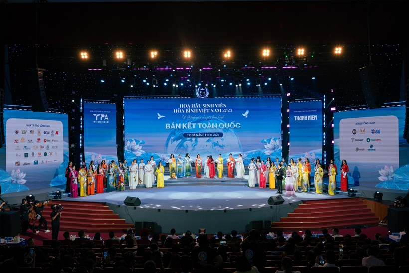 | Đêm bán kết Hoa hậu Sinh viên Hòa bình Việt Nam 2025 quy tụ 44 thí sinh tranh tài. (Ảnh: Ban Tổ chức) |