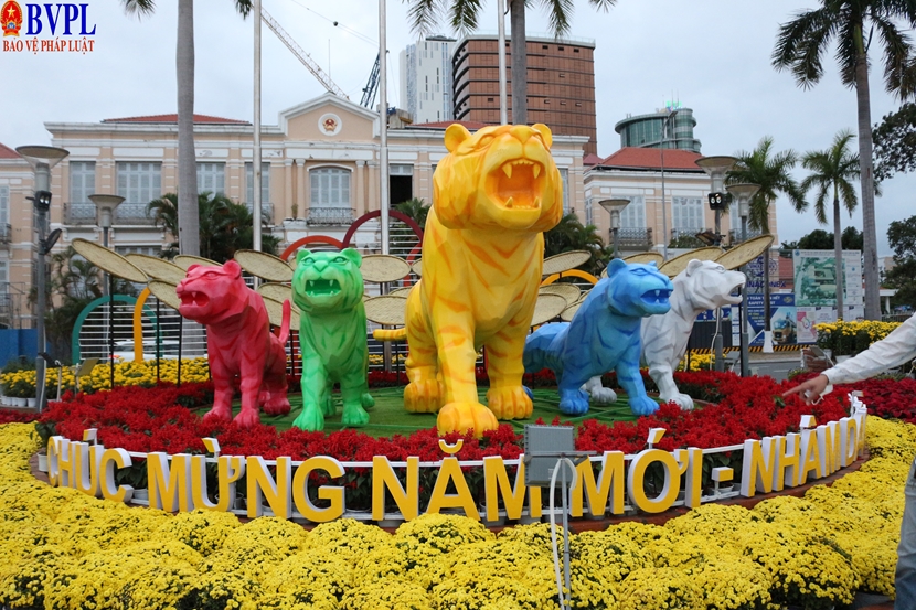 | Những chú hổ được thiết kế lạ mắt và đáng yếu đang nhảy múa giữa đường hoa Đà Nẵng, thể hiện sự vui tươi và lạc quan đón năm mới của người dân thành phố sông Hàn. (ảnh: LT) |