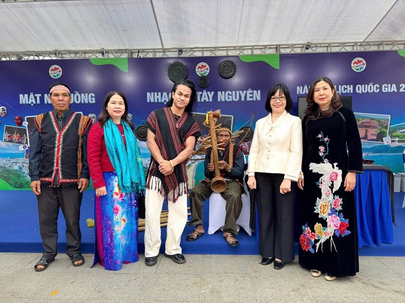 | Không gian trải nghiệm văn hóa Tây Nguyên với nghệ nhân trình diễn nhạc cụ dân tộc tại Ngày Gia Lai tại Hà Nội, quảng bá bản sắc vùng đất hướng tới Năm Du lịch Quốc gia 2026. Ảnh: GL