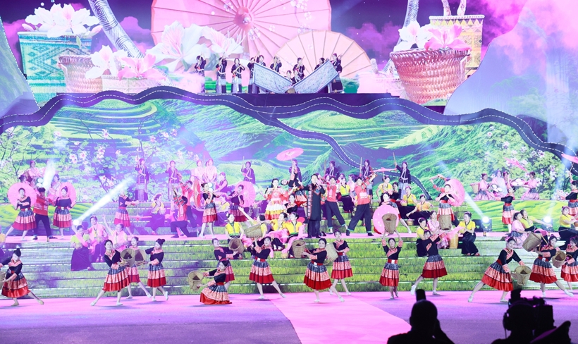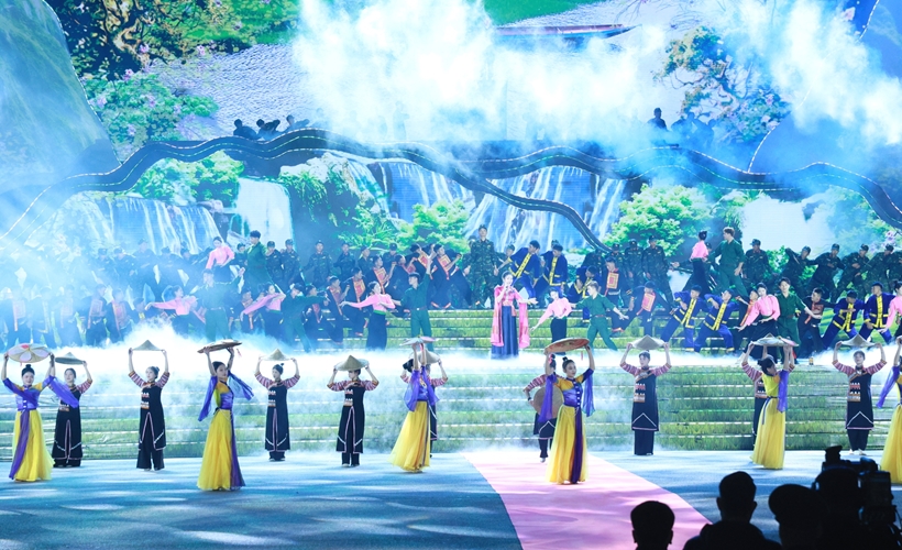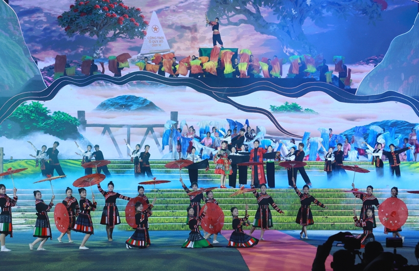 Không chỉ là lời chào mừng, tiết mục nghệ thuật mở màn còn gợi lại khí thế tự hào khi tỉnh Lai Châu bước vào nhiệm kỳ mới sau thành công của Đại hội Đảng bộ tỉnh lần thứ XV, hướng tới Đại hội toàn quốc lần thứ XIV.