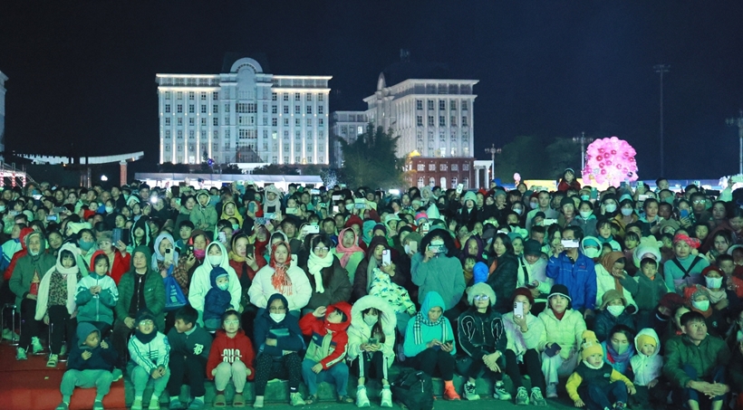 Ngay từ sớm, hàng nghìn người dân đã đổ về Quảng trường Nhân dân tỉnh để hòa mình vào không khí lễ hội. Ánh sáng, âm nhạc và sắc màu văn hóa đan xen tạo nên một không gian nghệ thuật giàu cảm xúc.