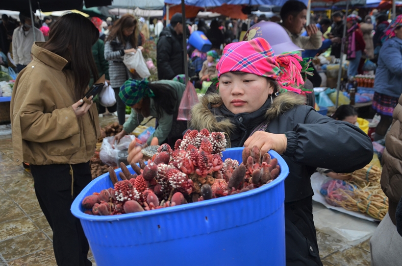Khu nông sản mùa xuân mang theo mùi đất mới. Cải mèo xanh non, bí đỏ vàng, mật ong rừng, măng khô, ớt, những gia vị thiết yếu... được bày bán giản dị. Tiếng hỏi han, mặc cả diễn ra tự nhiên, thân tình. Nhiều người đi chợ không chỉ để bán hàng mà còn để gặp gỡ, cập nhật tin tức đầu năm. Phiên chợ vì thế vừa là không gian kinh tế, vừa là nơi kết nối cộng đồng.