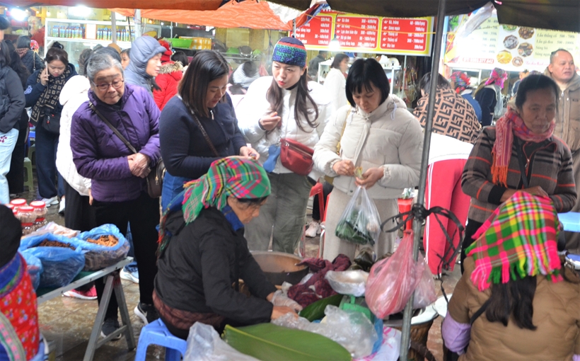 Ở góc ẩm thực, khói bếp lan tỏa trong tiết trời se lạnh. Xôi bảy màu, bánh chưng gù, thắng cố, phở chua, bánh ngô, rượu ngô nóng thu hút đông thực khách. Du khách có thể ngồi bên bếp lửa cùng người bản địa, lắng nghe những câu chuyện về mùa vụ, về lễ hội xuân. Sự chân thành trong cách mời chào, cách chia sẻ khiến trải nghiệm ẩm thực nơi đây trở nên đáng nhớ.