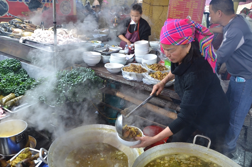 | Nồi thắng cố nóng hổi mời gọi du khách vào khu ẩm thực. |