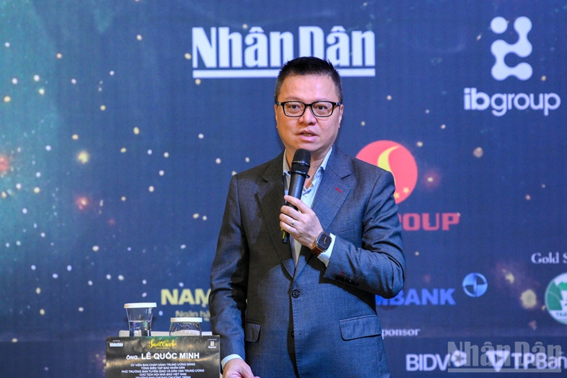 | Tổng Biên tập Lê Quốc Minh chia sẻ tại buổi họp báo. |