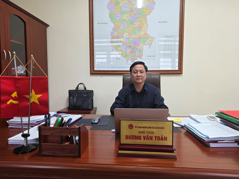 | Đồng chí Dương Văn Toản, Chủ tịch UBND xã An Khánh tỉnh Thái Nguyên trao đổi với phóng viên. |