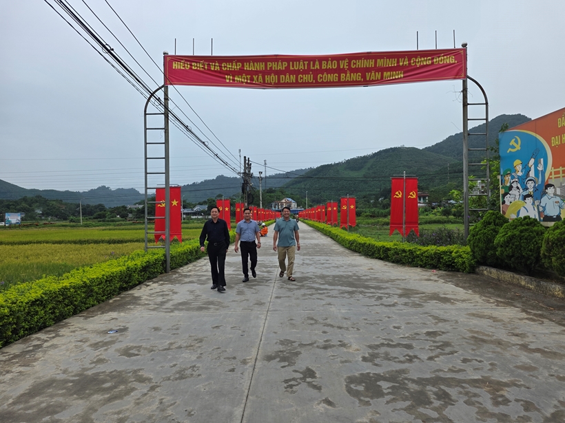 | Lãnh đạo UBND xã An Khánh tỉnh Thái Nguyên đi kiểm tra các tuyến đường nông thôn mới rộng 6m của xã . |
