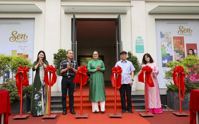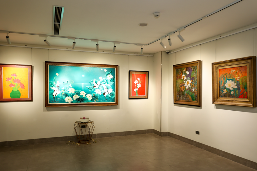 Phần trưng bày chung mang tên “Sen tháng Năm” là nơi các họa sĩ cùng khai thác hình tượng hoa sen qua nhiều chất liệu như: Sơn mài, sơn dầu, giấy dó, lụa…Tại đây, mỗi tác phẩm là một cách biểu đạt riêng, từ những bảng màu trầm mặc, giàu tính thiền của sơn mài đến những lớp màu phóng khoáng, biểu cảm của sơn dầu, hay sự tinh tế, nhẹ nhàng của lụa và giấy dó.