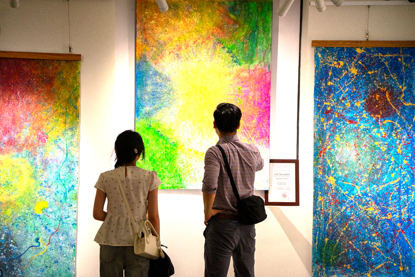 | Khách tham quan thưởng thức các tác phẩm tại triển lãm. |