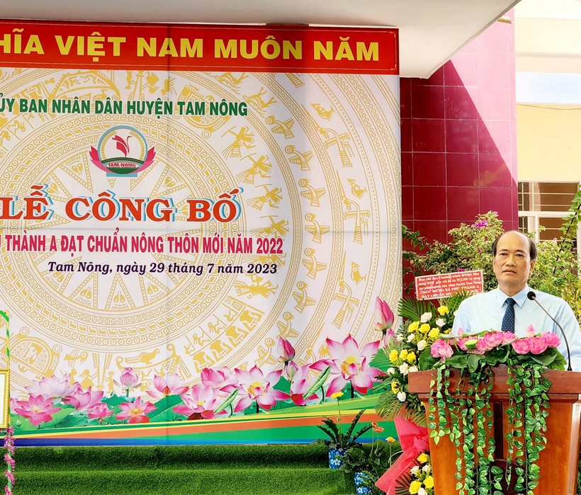 Về phía UBND huyện Tam Nông có đồng chí Huỳnh Thanh Sơn, Tỉnh ủy viên, Bí thư huyện ủy; Trần Thanh Nam, Phó bí thư huyện ủy, chủ tịch UBND huyện cùng các cấp, ban, ngành tỉnh, huyện, lãnh đạo đảng ủy- UBND xã cùng người dân đón nhận Quyết định xã đạt chuẩn xây dựng nông thôn mới.