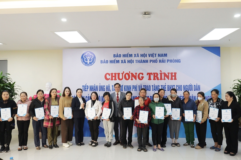 | Bảo Hiểm xã hội hải phòng trao tặng thẻ BHYT cho người dân có hoàn cảnh khó khăn. |