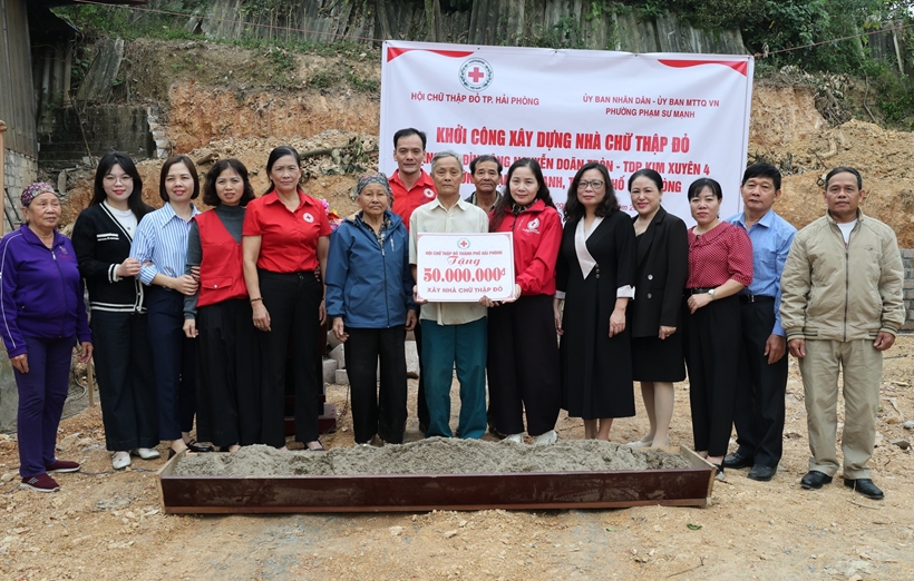 | Hội Chữ thập đỏ Hải Phòng trao kinh phí hỗ trợ xây nhà cho ông Nguyễn Doãn Tròn. |