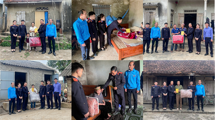 Còn tại tỉnh Nghệ An, hưởng ứng Thư kêu gọi của đồng chí Bí thư Tỉnh ủy Nghệ An về việc ủng hộ, giúp đỡ người nghèo, người có hoàn cảnh khó khăn, người yếu thế đón Tết Bính Ngọ. Với tinh thần xung kích, trách nhiệm vì cộng đồng, đoàn viên Chi đoàn VKSND khu vực 4, tỉnh Nghệ An đã tổ chức chuỗi hoạt động “Xuân ấm áp - Tết yêu thương”, triển khai nhiều hoạt động chăm lo đời sống cho người dân và thiếu nhi có hoàn cảnh khó khăn trên địa bàn.