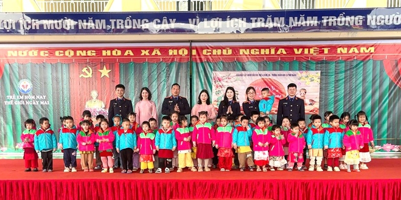 | Chi đoàn VKSND khu vực 4, tỉnh Nghệ An tặng 40 áo ấm đến các em học sinh có hoàn cảnh khó khăn. |