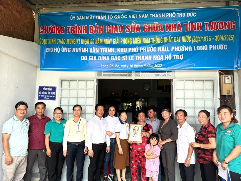 Ngày 10/5, UBMTTQ Việt Nam TP Thủ Đức, TP HCM tổ chức bàn giao công trình sửa nhà tình thương cho hộ ông Huỳnh Văn Trinh, tổ 29, khu phố Phước Hậu, phường Long Phước.