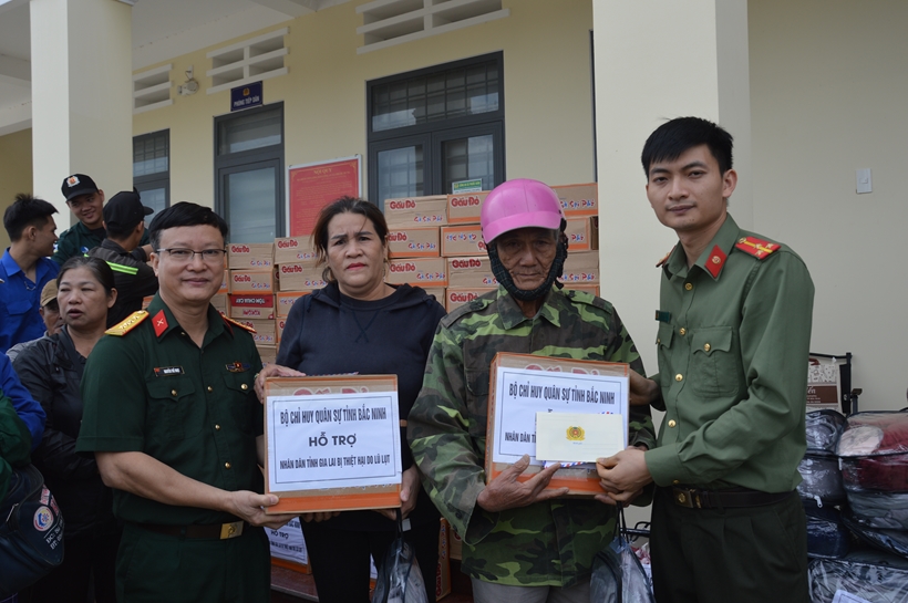 Trong những ngày qua, sau đợt mưa lũ đặc biệt lớn do bão số 13 gây ra, nhiều khu vực trên địa bàn miền Trung, Tây Nguyên, trong đó có tỉnh Gia Lai bị ngập lụt, chia cắt, gây ảnh hưởng nặng nề đến đời sống của nhân dân. Nhằm kịp thời sẻ chia khó khăn, trong 2 ngày 27 và 28/11, Bộ Chỉ huy quân sự tỉnh Bắc Ninh đã tổ chức đoàn công tác trực tiếp đến các khu vực bị ảnh hưởng để thăm hỏi và trao tặng quà hỗ trợ.