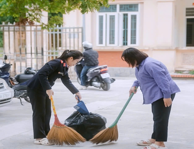| Đoàn viên thanh niên VKSND khu vực 6, tỉnh Hưng Yên dọn vệ sinh cơ quan. |
