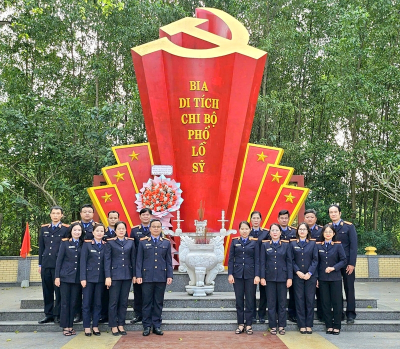 | Đoàn thăm Bia di tích Chi bộ Phổ Lỗ Sỹ. |