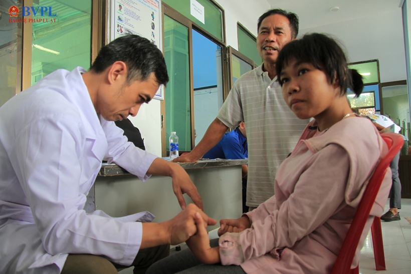 Chị Đinh Thị Lắc (25 tuổi), gia đình làm nghề trồng lúa, có con đã 4 tuổi rưỡi nhưng không biết đi và không biết nói. Chị rưng rưng nước mắt chia sẻ: "Con bị khuyết tật ống thần kinh trong quá trình mang thai. Con bị bẩm sinh từ nhỏ, trong quá trình mang thai, tôi có tầm soát bệnh nhưng không phát hiện ra bệnh của con. Từ khi sinh ra, bé chỉ nằm một chỗ. Khi nghe chính quyền địa phương thông báo có bệnh viện tại TP HCM đến khám bệnh cho con, nên gia định đưa con đến từ 6h sáng, chúng tôi đã chờ đợi hơn 3 tiếng chỉ mong muốn con mình được khám bệnh và con sẽ mau khỏi bệnh".