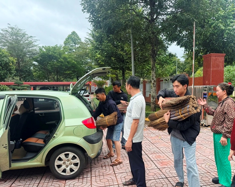 | Chổi xương, cuốc, xẻng...là những công cụ phục vụ hiệu quả cho công cuộc khắc phục hậu quả sau lũ. |