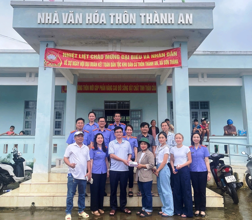 Ngay sau đó, đồng chí Phạm Trung Thuận cùng Đoàn công tác VKSND tỉnh đã trực tiếp đến thăm, động viên và trao quà cho bà con thôn Thành An. Tại đây, đoàn đã hỗ trợ 15 triệu đồng và 50 phần quà nhu yếu phẩm thiết yếu để chia sẻ với các hộ dân bị ảnh hưởng. Đồng thời, cũng trao 30 triệu đồng và 100 phần quà thông qua UBND xã Sơn Thành, nhằm kịp thời hỗ trợ các gia đình gặp thiệt hại nặng trong toàn xã.