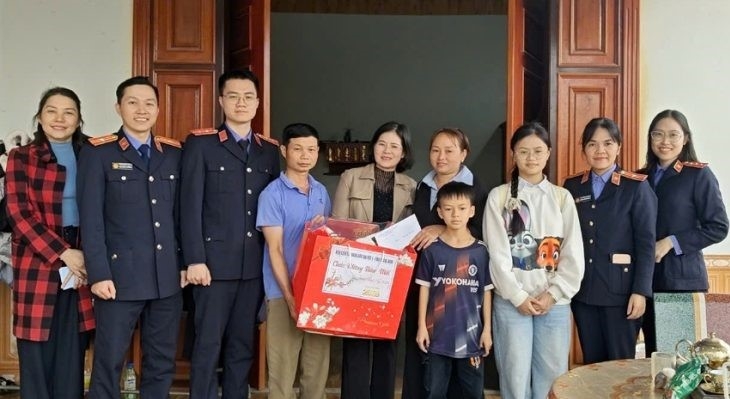 | Đồng chí Vũ Thị Đoan, Viện trưởng VKSND khu vực 1 – Quảng Ninh cùng cán bộ, công chức đơn vị trực tiếp đưa các cháu về nhà ăn tết. |