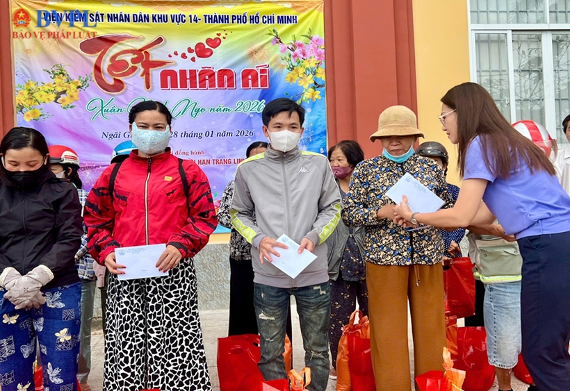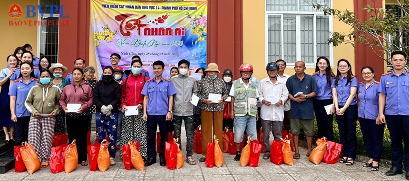 Chiều ngày 28/1/2026, VKSND Khu vực 14 TP Hồ Chí Minh đã tổ chức Chương trình “Tết nhân ái - Xuân Bính Ngọ năm 2026”, trao tặng nhiều phần quà ý nghĩa cho các hộ nghèo trên địa bàn.