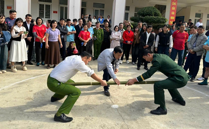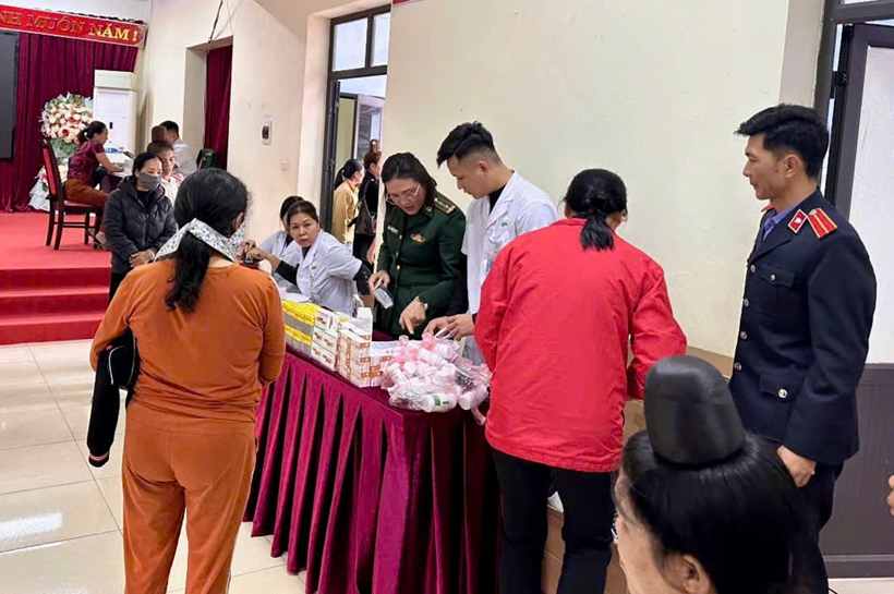 | Các đồng chí tham gia hướng dẫn cấp phát thuốc miễn phí cho người dân và tham gia trò chơi dân gian. |