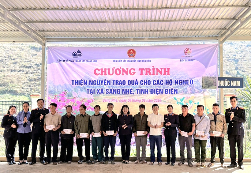 Ngày 6/2/2026, VKSND tỉnh Điện Biên phối hợp với Công ty Cổ phần TM&XD NQT Quảng Ninh và Công ty EATC Germany tổ chức chương trình thiện nguyện, lắp đặt đèn đường năng lượng mặt trời và trao quà Tết cho Nhân dân xã Sáng Nhè.