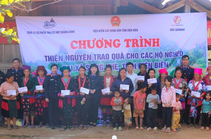 Đồng hành cùng VKSND tỉnh Điện Biên trong công tác thiện nguyện, Công ty Cổ phần TM&XD NQT Quảng Ninh ủng hộ 30 triệu đồng; Công ty EATC Germany ủng hộ 20 triệu đồng, VKSND tỉnh ủng hộ 10 triệu đồng để trao 120 suất quà Tết với tổng giá trị 60 triệu đồng cho các hộ dân có hoàn cảnh khó khăn trên địa bàn xã Sáng Nhè, giúp Nhân dân vui Xuân, đón Tết cổ truyền trong không khí ấm áp, nghĩa tình.