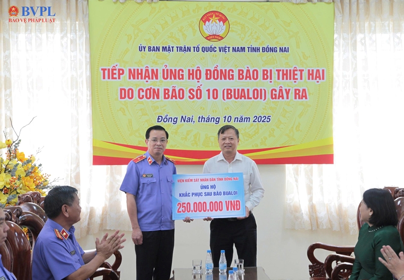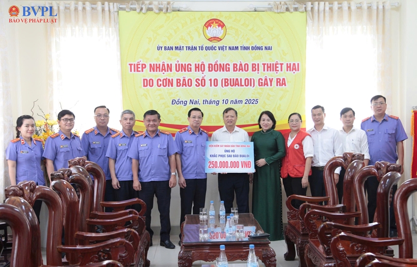 Ngày 13/10, VKSND hai cấp tỉnh Đồng Nai đã trao 250 triệu đồng đến Ủy ban Mặt trận Tổ quốc (UBMTTQ) Việt Nam tỉnh Đồng Nai để ủng hộ đồng bào bị thiệt hại nặng nề do cơn bão số 10 (BUALOI) và hoàn lưu bão gây ra.