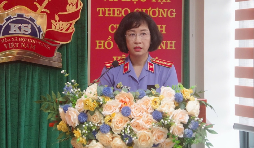 Đồng chí Nguyễn Thị Mai Lập, Viện trưởng VKSND tỉnh Tuyên Quang phát biểu tại Lễ phát động. |