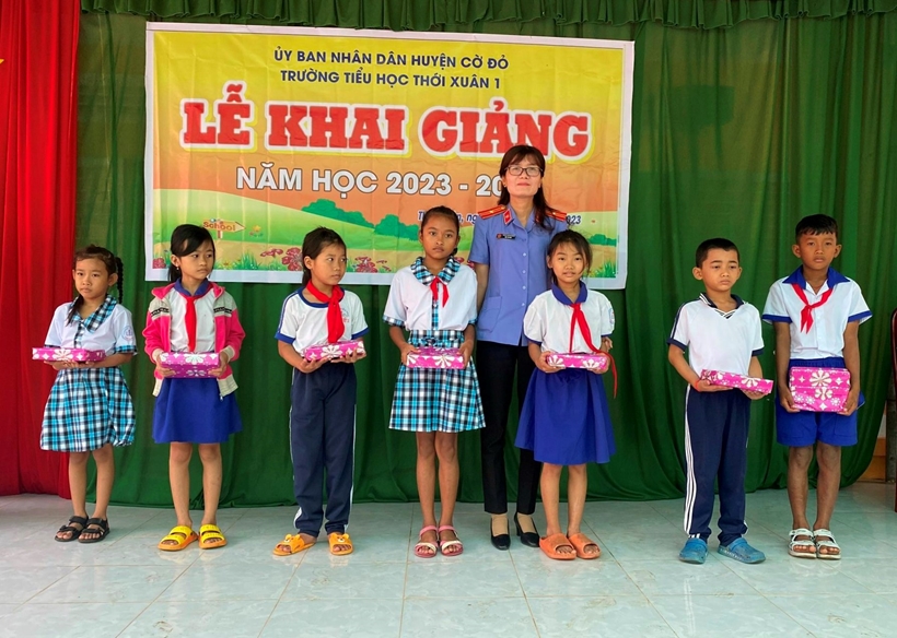 Ngoài ra, Tổ Phụ nữ VKSND huyện Cờ Đỏ trao tặng 450 quyển tập cho học sinh có hoàn cảnh khó khăn của trường Tiểu học Trung Hưng 1 và Trường Tiểu học xã Đông Hiệp, huyện Cờ Đỏ; Tặng 26 phần quà cho học sinh nghèo vượt khó học giỏi trên địa bàn huyện Cờ Đỏ là 260 quyển tập trị giá 2.500.000 đồng.