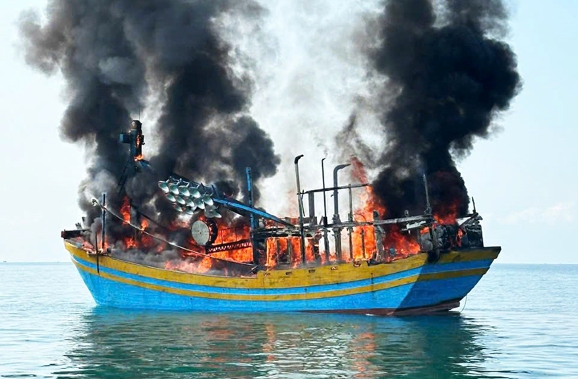 Như đã đưa tin, vào lúc 8h15’ sáng ngày 15/4, sau chuyến đánh bắt trở về, tàu cá BTh 95768 TS/21 thuyền viên, công suất 750 Cv, hành nghề vây rút chì, do ông Nguyễn Văn Tư là chủ phương tiện, đồng thời là Thuyền trưởng, đang neo đậu cách Cảng cá Phú Hải khoảng 2km thì bất ngờ bốc cháy.