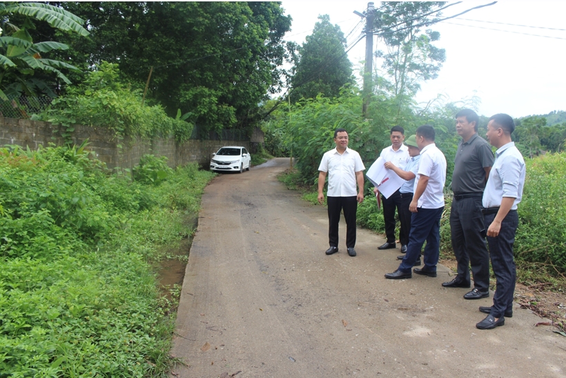 |  Đoàn Lãnh đạo xã Tức Tranh xuống kiểm tra thực trạng để mở tuyến đường nông thôn mới tại xã. |