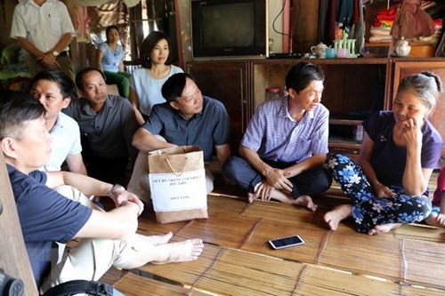 | Đoàn công tác của Bộ Y tế đến thăm hỏi, động viên người dân và tìm hiểu vụ việc. (Ảnh: Trung Kiên/TTXVN) |