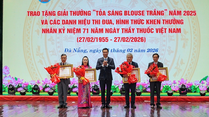 | Chủ tịch UBND TP Đà Nẵng Phạm Đức Ấn và lãnh đạo Sở Y tế TP Đà Nẵng trao tặng giải thưởng “Tỏa sáng Blouse trắng” năm 2025 cho các cá nhân. |