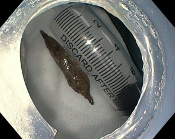 Kết quả siêu âm và chụp CT ổ bụng cho thấy có dị vật cứng, một đầu nhọn đã xuyên vào thành dạ dày. Ekip bác sĩ hội chẩn và quyết định nội soi can thiệp khẩn. Qua nội soi, các bác sĩ xác định dị vật là hạt táo đỏ dài khoảng 3cm, nhọn hai đầu, trong đó một đầu cắm chặt vào niêm mạc dạ dày. Nhờ thao tác chính xác, ekip đã gắp dị vật ra ngoài an toàn. Sau 24 giờ theo dõi, bệnh nhân tỉnh táo, sức khỏe ổn định, không ghi nhận biến chứng.