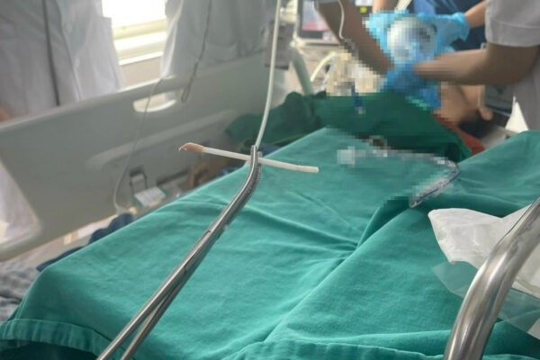 Các bác sĩ đã cấp cứu gắp dị vật khí quản, kiểm soát đường thở bằng đặt ống nội khí quản cỡ nhỏ (do có sẹo hẹp khí quản). Sau đó, được hội chẩn với chuyên khoa tai mũi họng mở lại khí quản đặt canuyn để người bệnh trở lại sinh hoạt thường ngày.