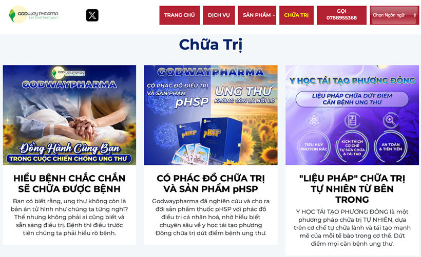 | Trang website có tên godwaypharma.com, thì phát hiện trang này quảng cáo nhiều nội dung về chữa bệnh ung thư. (Ảnh: chụp màn hình). |