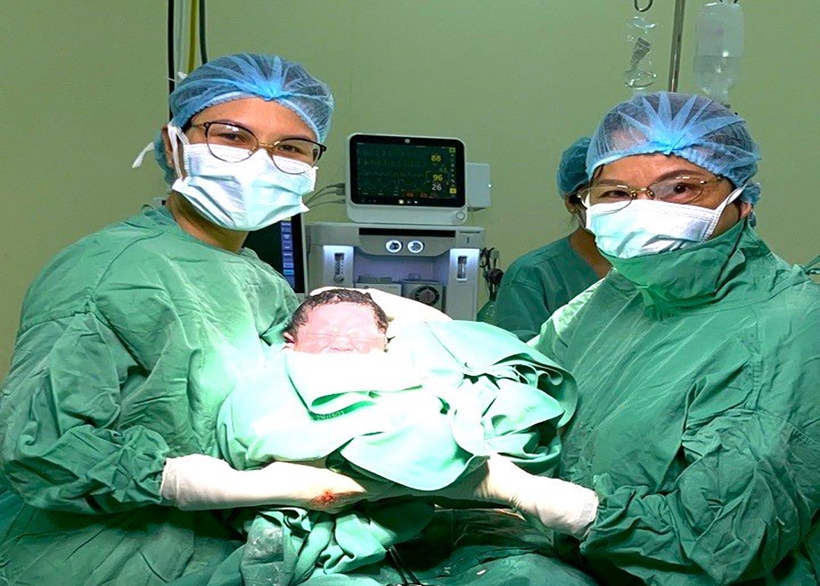 Sau 1h đồng hồ, ekip phẫu thuật thành công, bé trai nặng 3,5kg. Sức khỏe mẹ và bé ổn định, bé hồng hào, bú tốt.