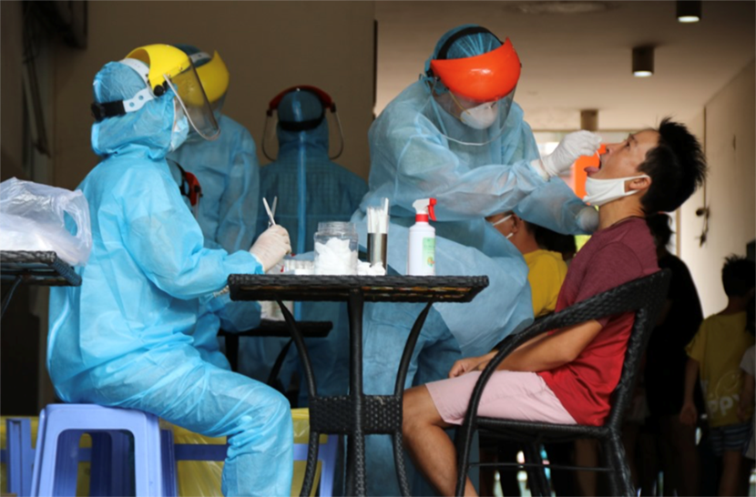 | Lấy mẫu xét nghiệm COVID-19 tại TP HCM. Ảnh: Anh Nhàn. |