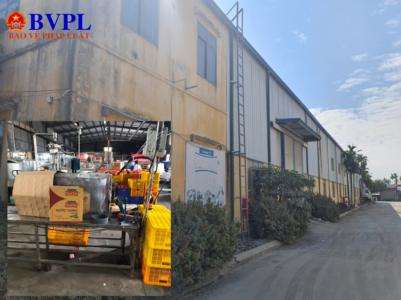 | Bên trong (ảnh nhỏ) và bên ngoài Công ty Bình Minh, nơi xảy ra vụ việc. |