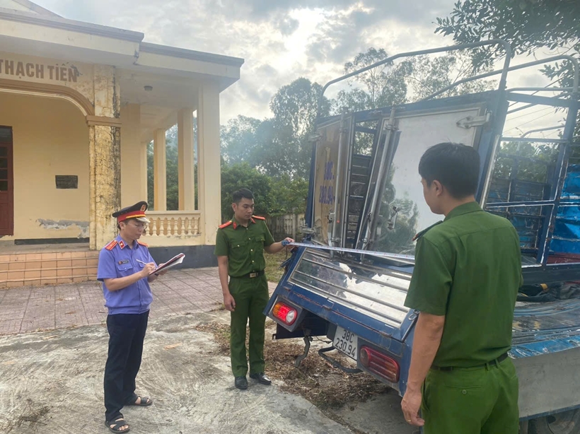 Kiểm sát viên VKSND khu vực 1 (Hà Tĩnh) kiểm sát việc kiểm tra phương tiện trong 1 vụ TNGT. |