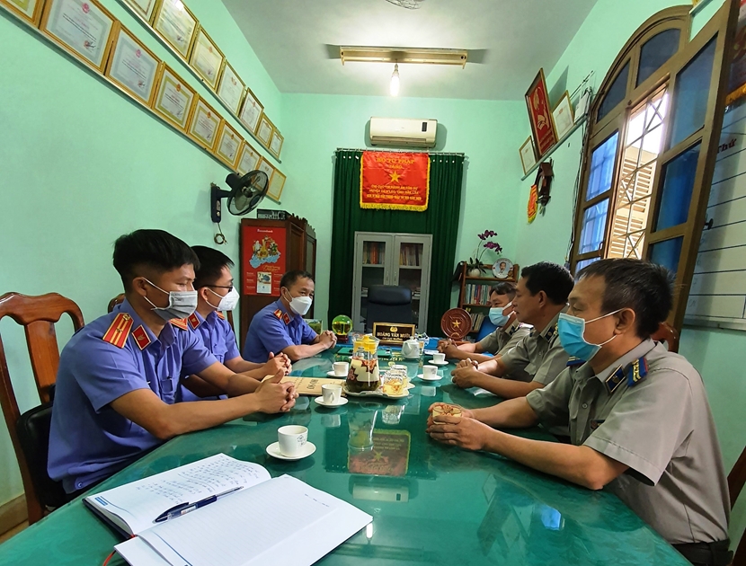 | Đoàn công tác của VKSND huyện Ea H'Leo làm việc tại Chi cục THADS cùng cấp. |