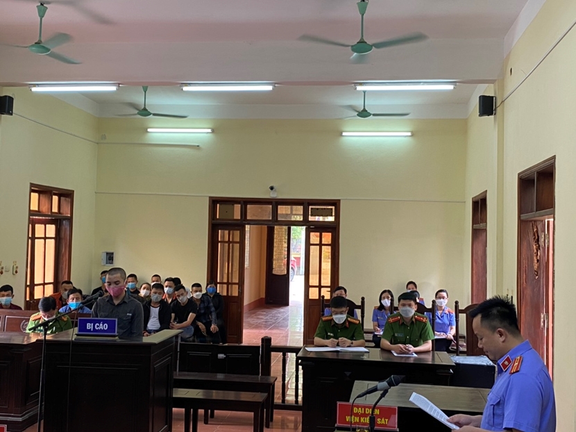 | Kiểm sát viên VKSND huyện Hưng Nguyên thực hành quyền công tố tại một phiên tòa hình sự. |