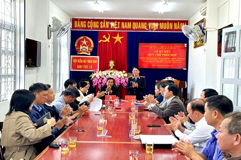 | VKSND khu vực 13 ký kết quy chế phối hợp phòng, chống tội phạm và phổ biến pháp luật với TAND cùng cấp và các UBND xã trên địa bàn. |