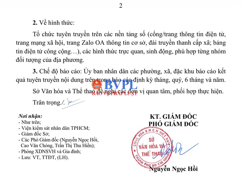 | Văn bản của Sở Văn hóa và Thể thao TP Hồ Chí Minh đề nghị UBND cấp xã phối hợp triển khai công tác tuyên truyền phòng, ngừa tội phạm. |