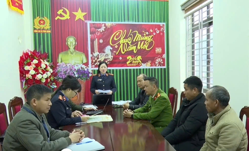 | Đồng chí Lê Thị Thuỳ Hương - Trưởng phòng 1, VKSND tỉnh Sơn La làm việc với cấp ủy, UBND, Công an xã Púng Bánh và gia đình Lò Văn Hiến. |