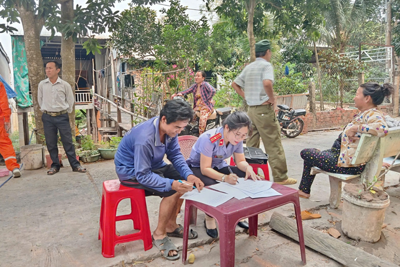 | Đơn vị VKSND Khu vực 12 tỉnh Đồng Tháp trực tiếp xuống địa bàn để xác minh thông tin do người dân phản ánh. |